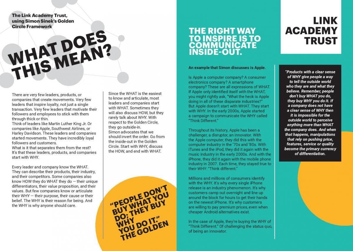 First and foremost, we set the direction and establish priorities, as this defines the view of success and prioritises the activities that make this view a reality. This helps everyone know what they should be working on, and order their actions. A clearly defined and articulated strategy ensures priority initiatives, the ones that will drive the highest success are given primary treatment. The Strategy ensures everyone is on the same page: the strategic direction is set so all academies and personnel are moving together to achieve the Link goals.