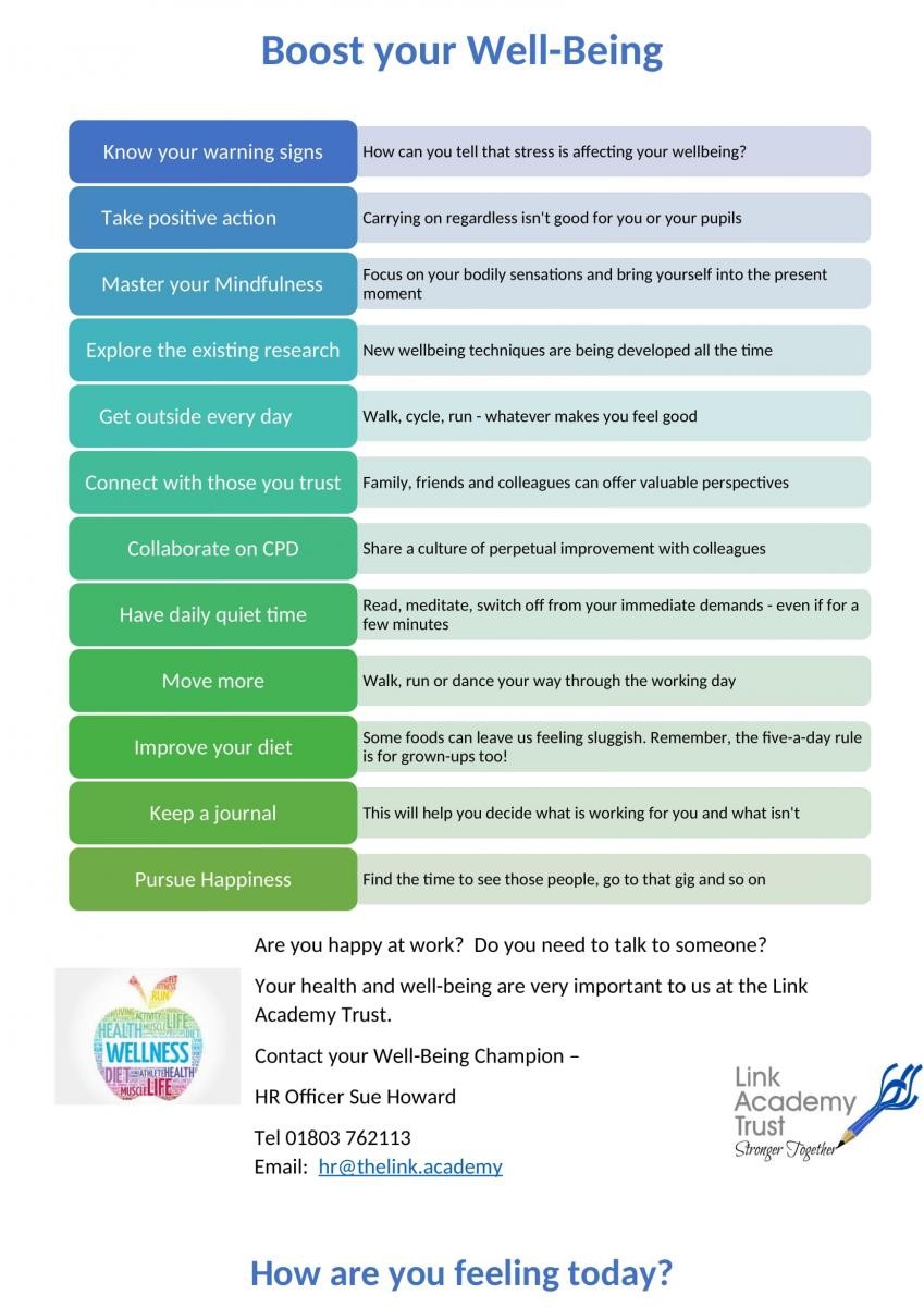 The Link Academy Trust will promote the well-being of employees by: